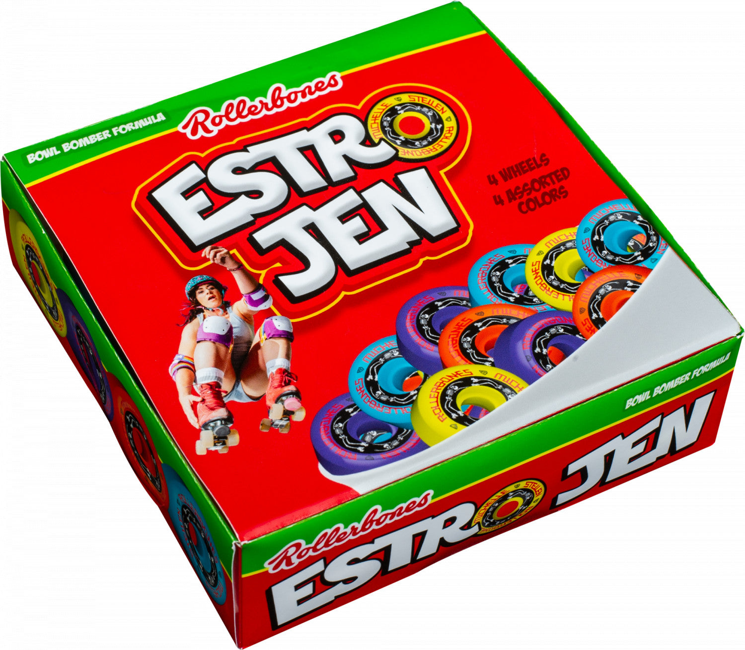 New from Rollerbones: Estro Jen's 101A Bowl Bombers! RollerBones X Michelle Steilen wheels for the skatepark come in 4 colors per box: 1 orange, 1 yellow, 1 blue, and 1 purple.
