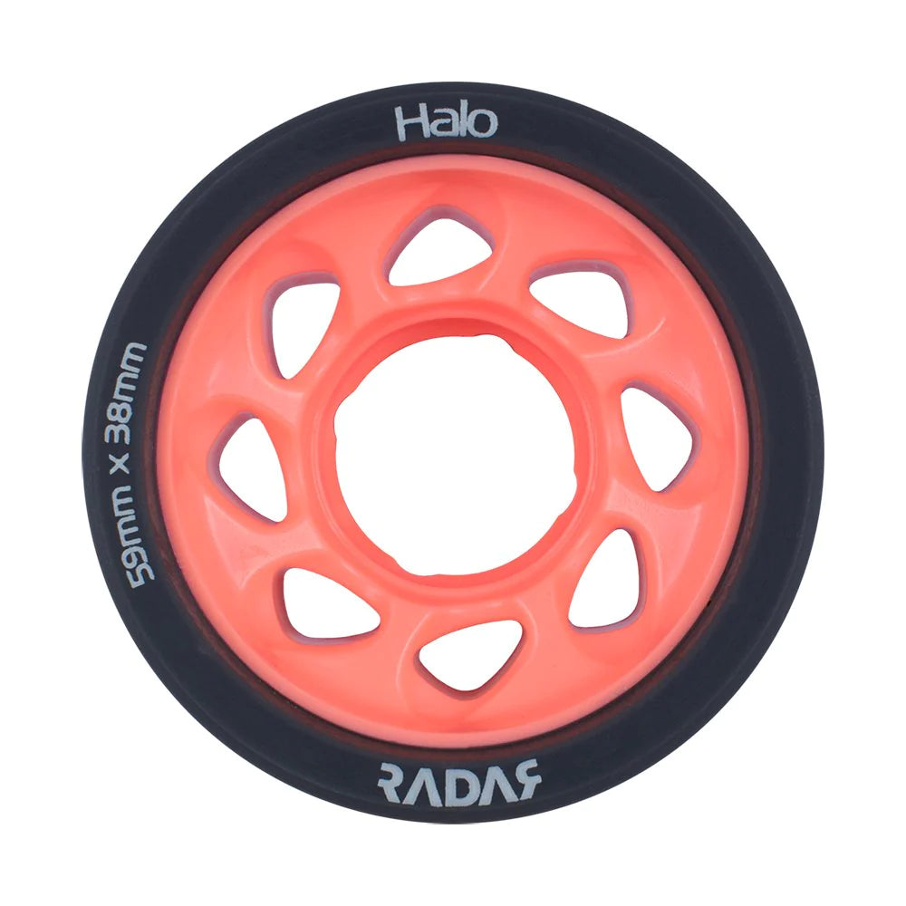 Achieve world-class edging without sacrificing grip! The shockingly lightweight Radar Halo features our innovative, signature H-shaped hub. The inner and outer edges of the hub are oversized, which reduces the amount of urethane on the edges of the wheel. This makes it easy to perform stops and offers excellent response. The middle of the hub has room for more urethane, which offers grip, increases control, and improves ride. The Halo is sold in packs of four wheels. For a full set of wheels, be sure to select a quantity of two.