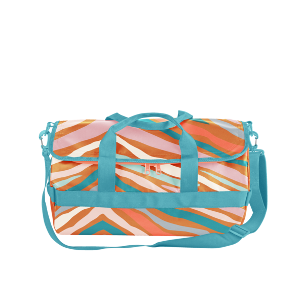 OMG! Trust us when we say that this is not just another duffel bag. There are not only handles on the top, like your basic bag but there is another handle on the end of the bag. Whether you're headed on a weekend getaway with the girls or to the gym, this will be your traveling BFF and is ready to go anywhere, anytime. Made out of tarpaulin material with heavy-duty waterproof zippers and nylon webbing, you can pack it full of all the necessities and go!Size L18" x W 11"x H 10.5"
